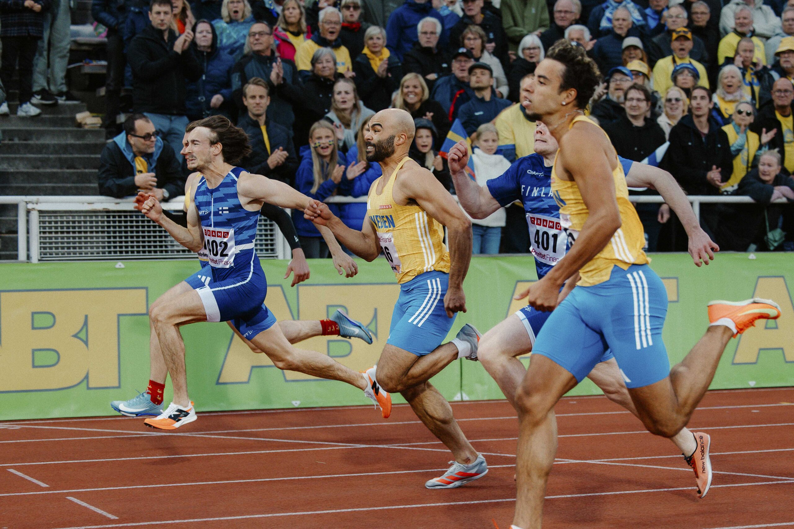 Illan päättäneissä pikaviesteissä Ruotsi kiiti miesten 4×100 metrillä otteluennätykseen 39,07. Siihen vauhtiin Suomella ei ollut asiaa, vaikka joukkue hyvin juoksikin aikaan 39,44.
