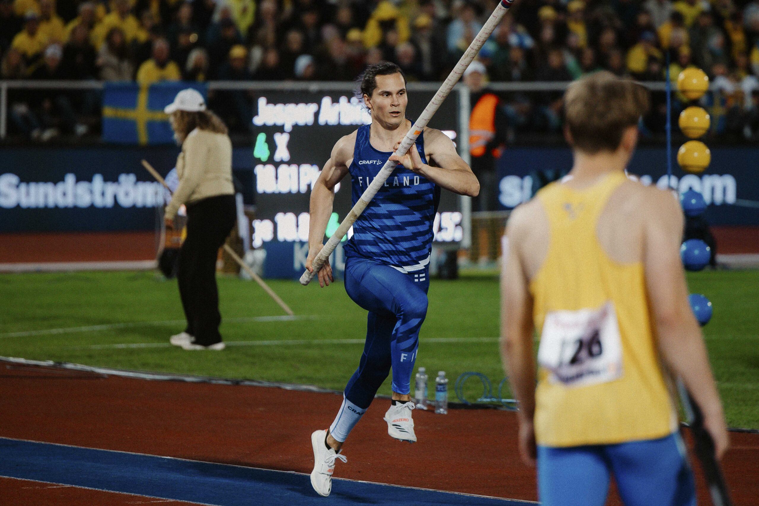 Armand Duplantis arvosti 100-vuotisjuhlaottelua ja otti voiton tuloksella 580. Hän teki yrityksiä myös korkeudesta 603, mutta koleassa illassa ja trikoissa hypäten rima jäi ylittämättä.