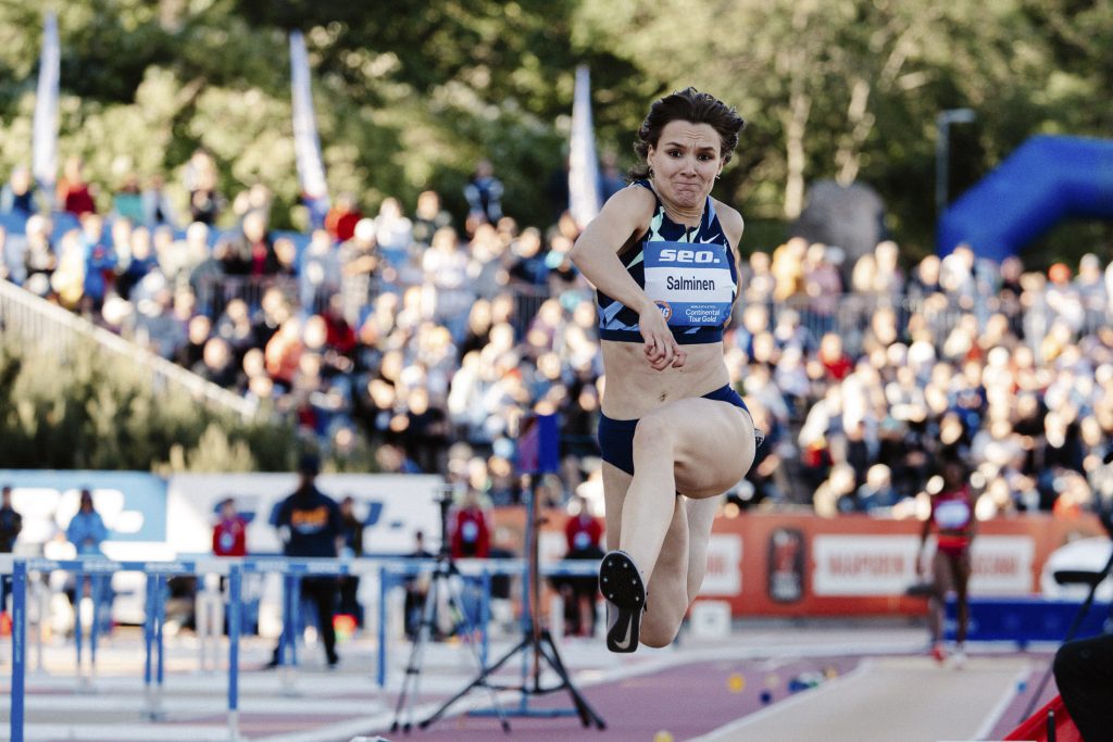 – Erikoiskiitos valmentajalle täällä, joka kuvasi hypyt, Salminen kiitteli Tanskassa asuvaa keihäänheittäjä Oliver Helanderia, joka auttoi ja kuvasi Salmisen loikat.