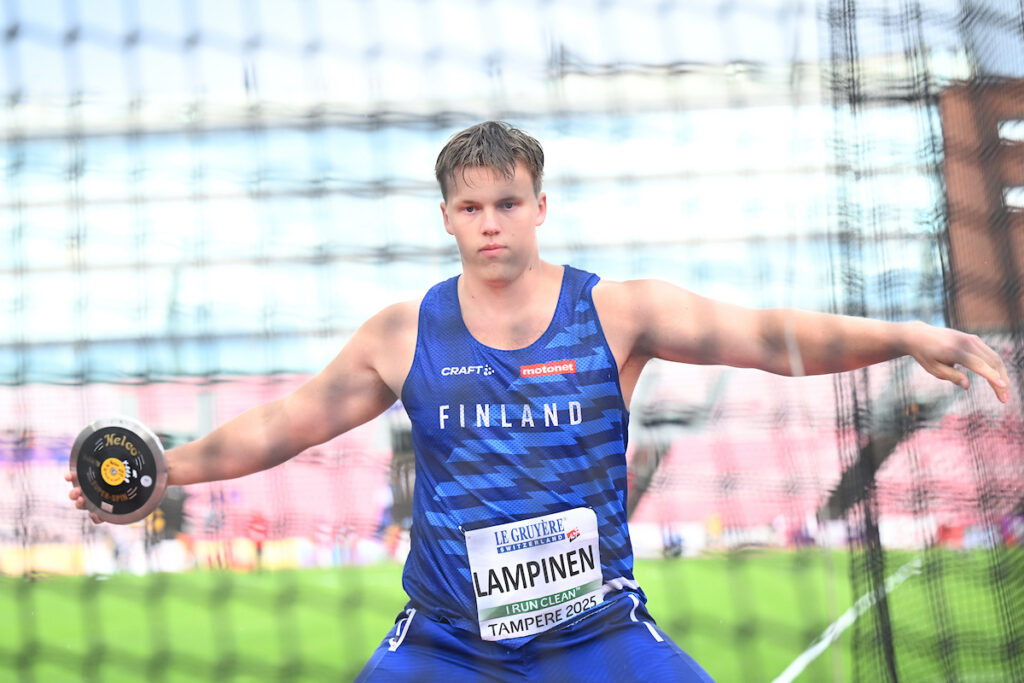 Muutama tunti aikaisemmin Lampinen saalisti finaalipaikan myös moukarissa, jonka finaali odottaa huomenna perjantaina. Kiekon finaali heitetään lauantaina. Myös moukarissa Lampinen lämmitteli kolmen heiton verran.