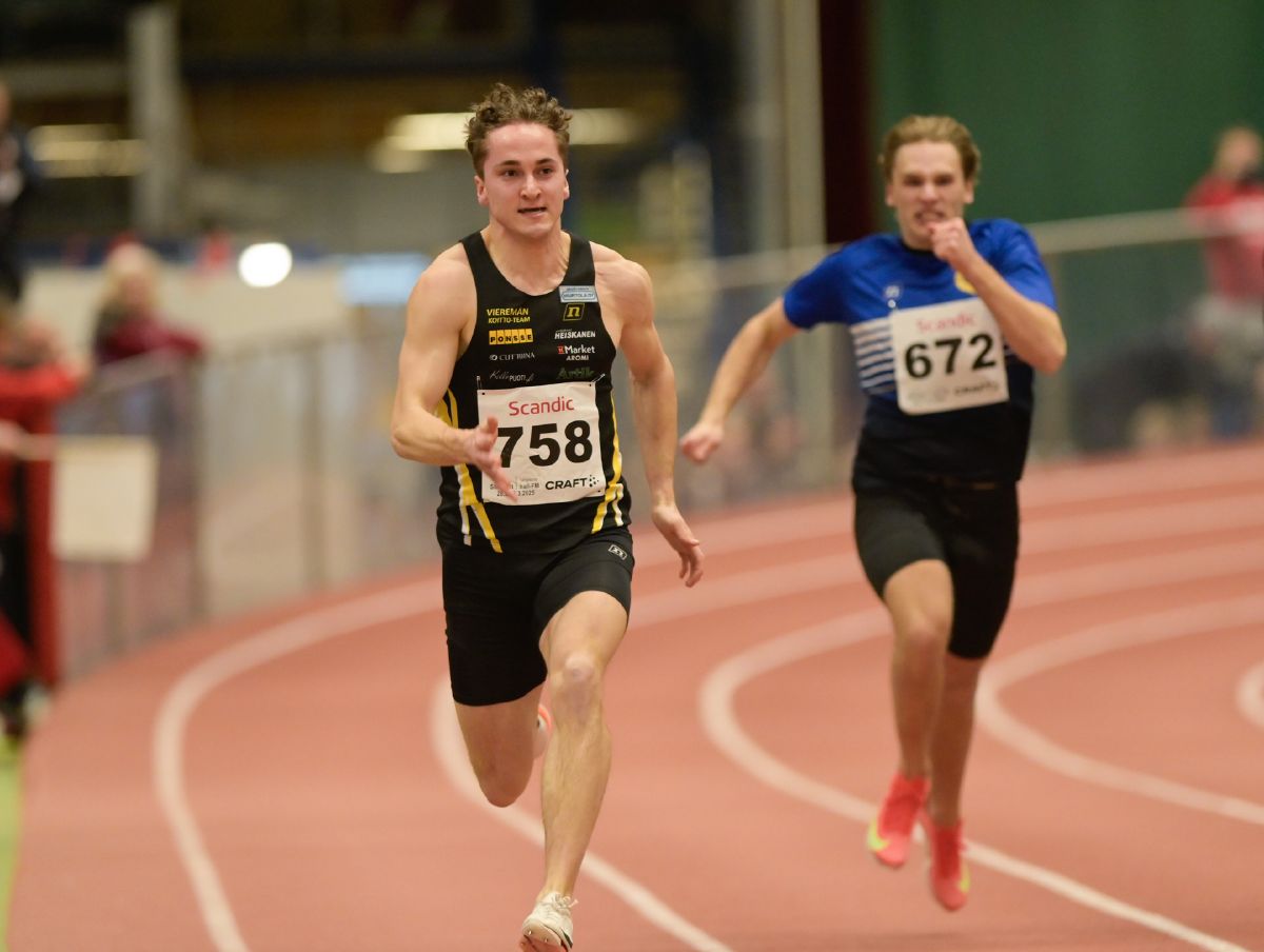 Sprintterilahjakkuus Juho Venäläinen juoksi Helsingissä yleisurheilun nuorten hallimestaruuskilpailujen henkilökohtaisten matkojen triplamestariksi. Hän kuorrutti voittosarjansa sunnuntaina 200 metrin lyhyiden ratojen ennätyksellään 21,16.