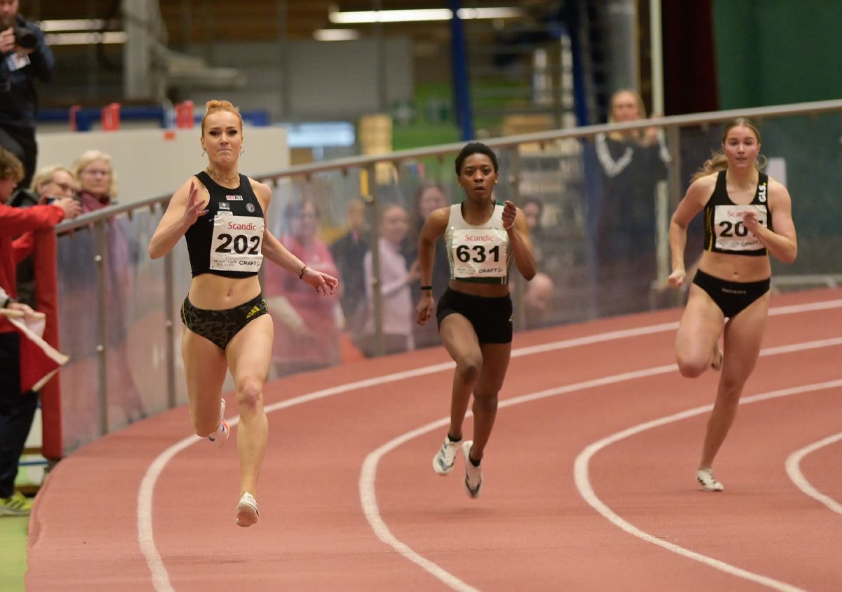 Leppävaaran Sisun Katja Luukkola oli 200 metrillä toinen halliennätyksellään 24,55 ja Pietarsaaren Drottin Priscilla Boateng kolmas ajalla 24,64 juostuaan alkuerissä ennätyksensä 24,55.