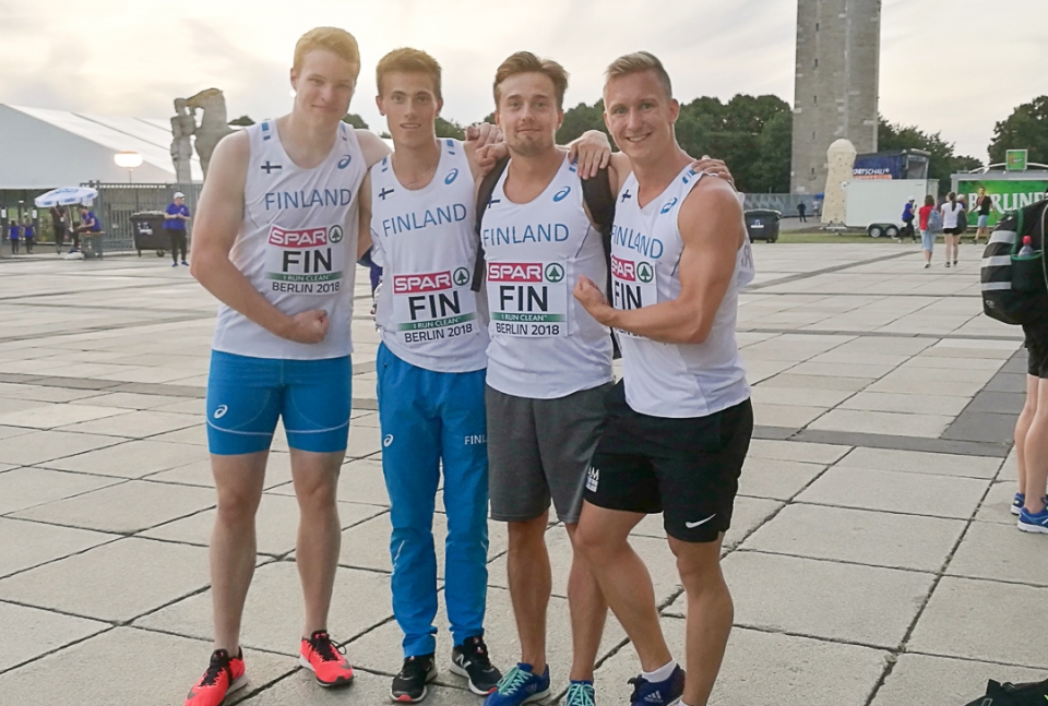 Tunnin odottelu ja epävarmuus jatkopaikasta alkuerä- ja finaalijuoksujen välissä ei syönyt Eetu Rantalan, Otto Ahlforsin, Oskari Lehtosen ja Samuel Purolan vauhtia 4 x 100 metrin EM-finaalista. Kapula tuli maaliin SE-ajassa 38,92.