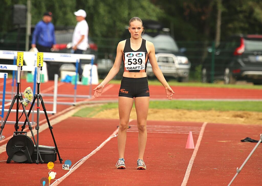 Lauantaina hänen mestaruuslajinsa olivat 100 metrin aidat ja kuulantyöntö. Huomenna sunnuntaina hän juoksee 200 metriä, jonka alkuerät ovat jo lauantai-iltana.
