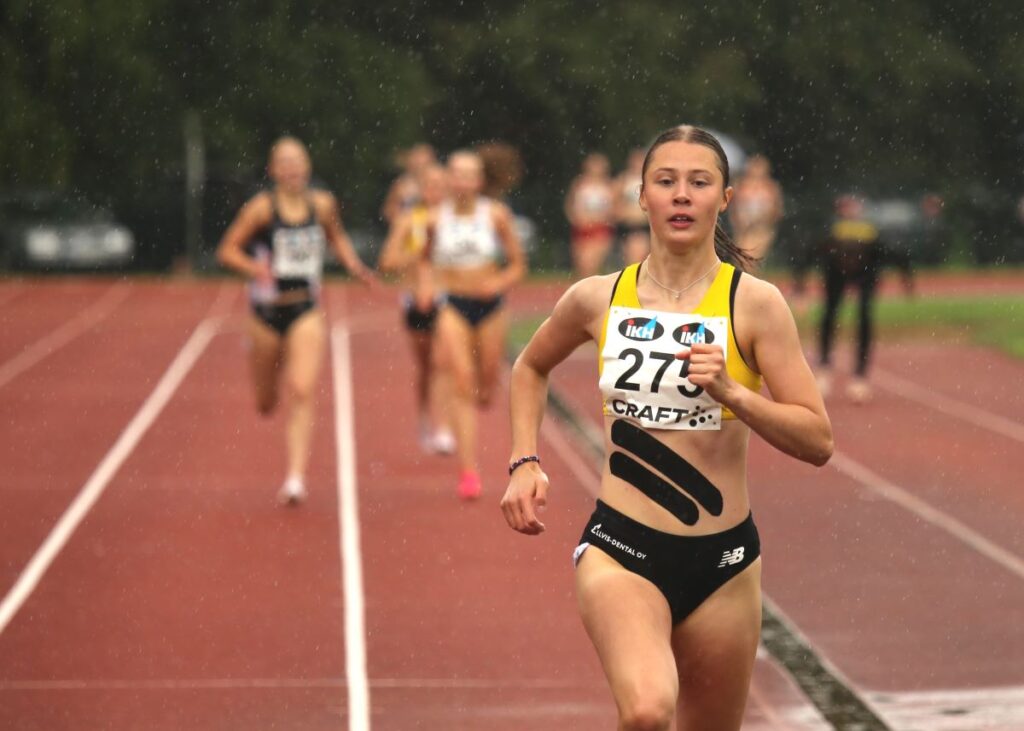 Lahden Ahkeran Inka Peltola ei sadetta säikähtänyt, vaan lähti heti kovaan vauhtiin 17-vuotisten 800 metrillä. Mestaruus tulikin ylivoimaisesti ajalla 2.14,38.