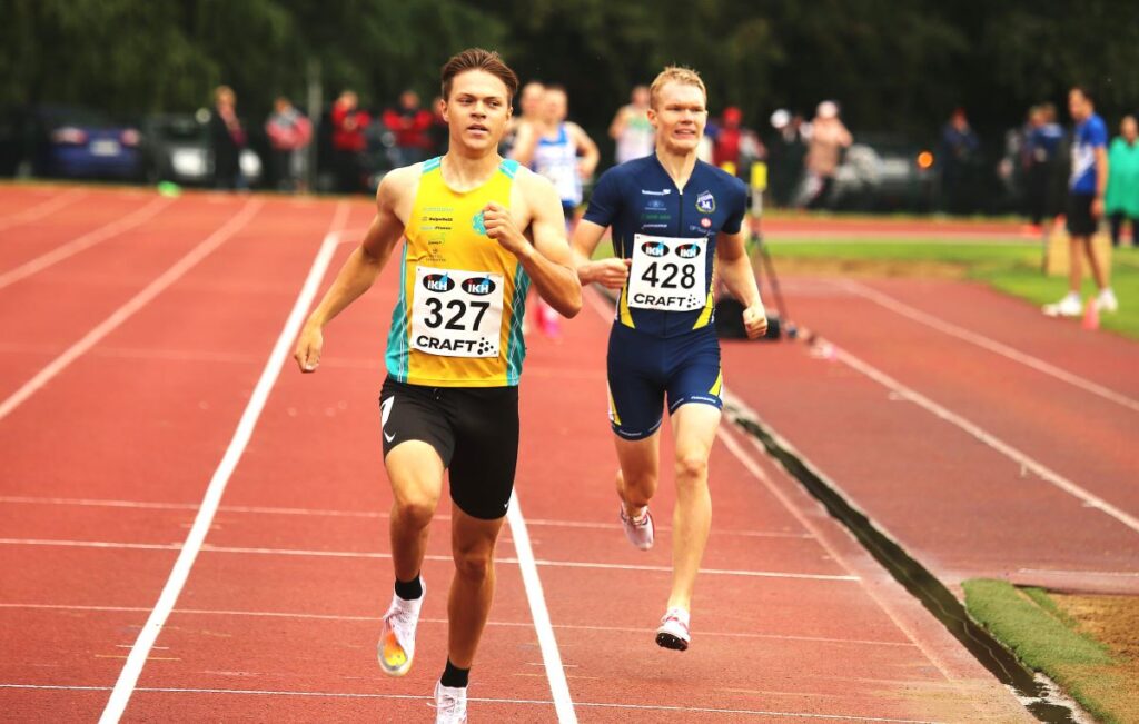 Kovaa starttasi myös Savonlinnan oma juoksija Lauri Mononen M17-sarjan 800 metrille. Kotiradalla kärkipaikka kesti viimeiselle 50 metrille, mutta sitten peesissä seurannut Limingan Niittomiesten Aapo Mäkiniemi paineli väkisin ohi ja mestaruuteen ajalla 1.55,92.