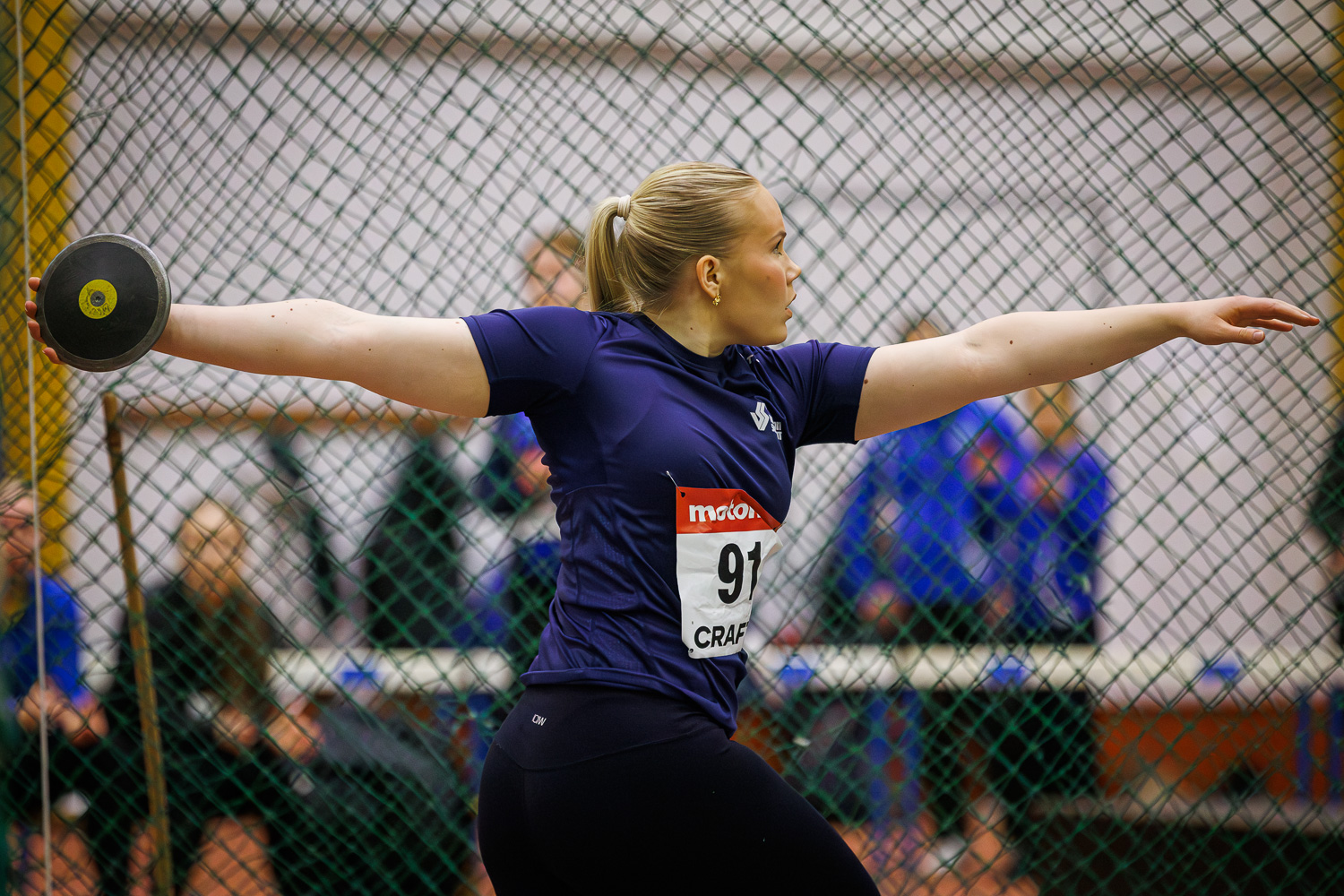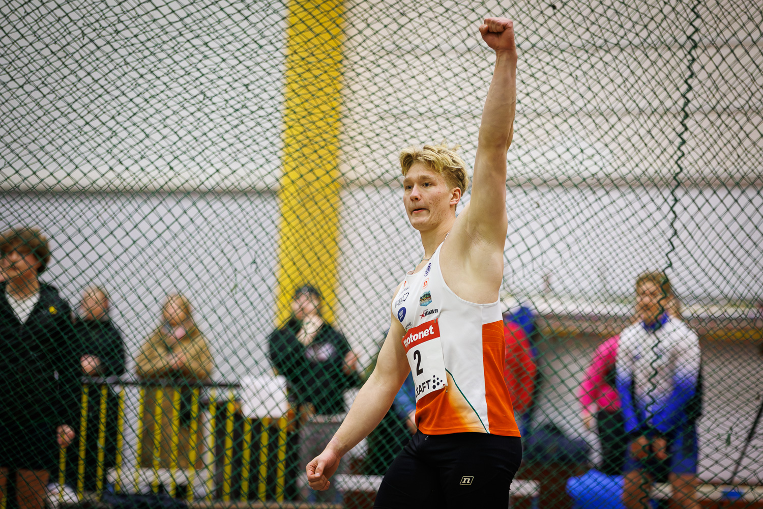 Vantaan Salamien Iida Muukka uusi 19-vuotiaiden naisten mestaruuden tuloksella 48,69, joka on hänen parhaansa hallissa. Tasaisessa sarjassa olivat myös 48,56 ja 48,24 kantaneet heitot.