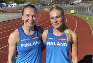 Suomalaiset PM-kilpailuissa Malmössä sunnuntaina 19.5. (Ajat Suomen aikoja) 12.00 N 4 x 100 m: Petra...